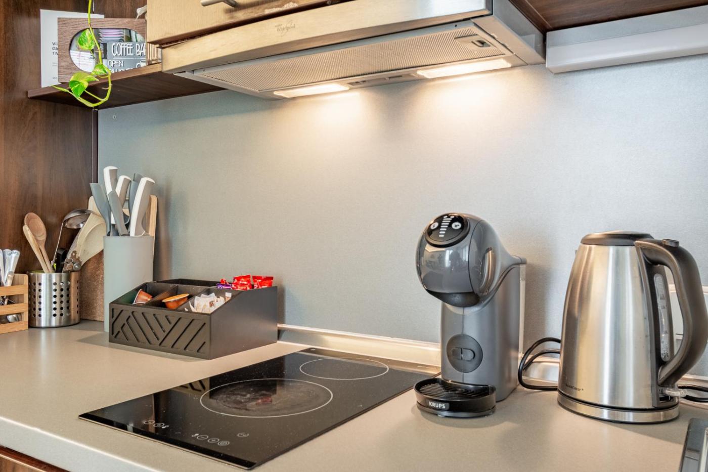 One-Bedroom Apartment. This apartment features 1 living room, 1 separate bedroom and 1 bathroom with a shower and free toiletries. In the fully equipped kitchen, guests will find a stovetop, a refrigerator, a dishwasher and kitchenware. This apartment has a washing machine, flat-screen TV with streaming services, city views, as well as chocolate for guests. The unit has 1 bed.