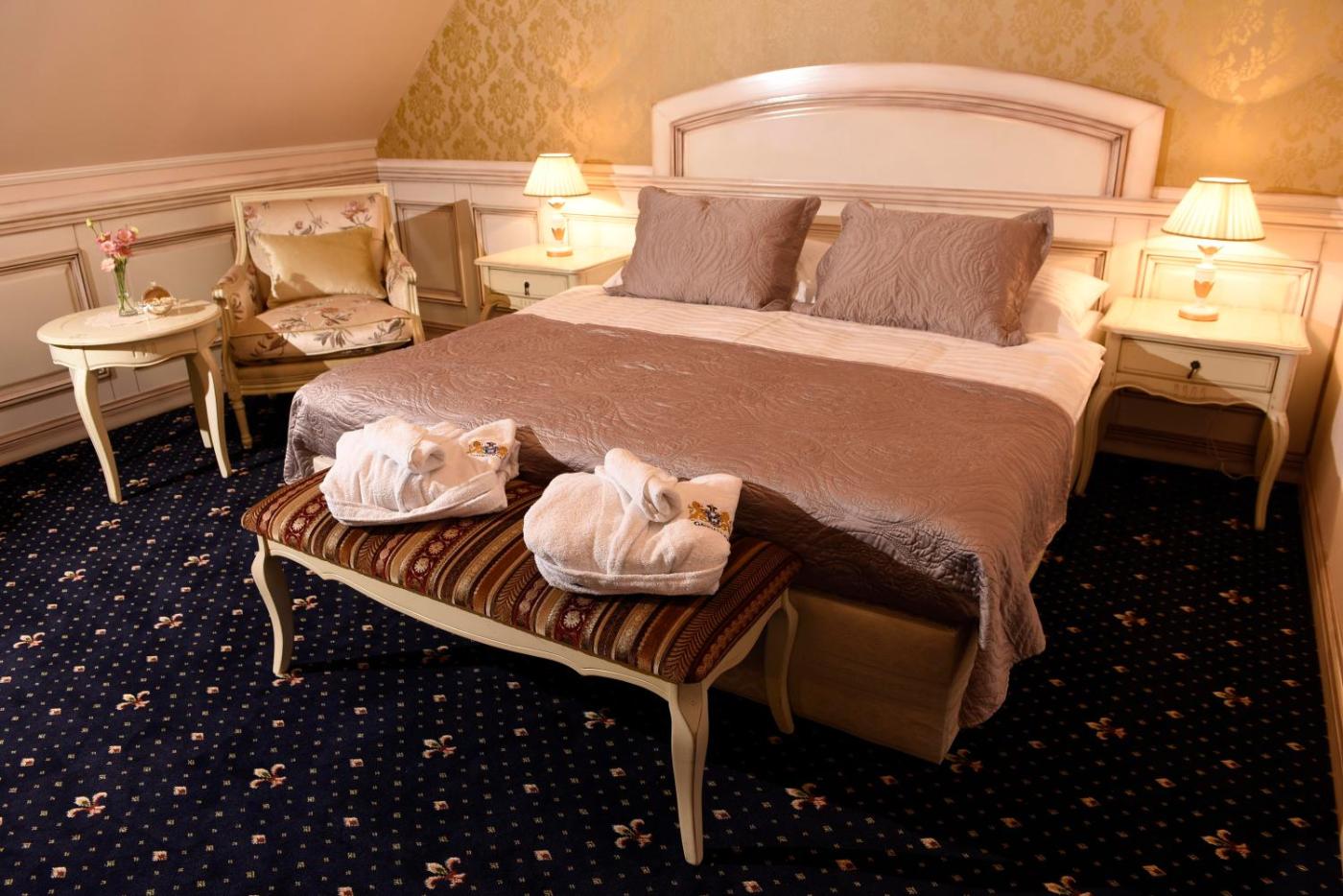 Deluxe Double Room. Most of the rooms are situated on the 1st floor and are designed in various historical styles. Some rooms also come with a ceramic stove or a fireplace. Each room features a double bed, a telephone, a TV, a minibar, a safety deposit box and a bathroom with a shower or a bath tub. Please note that extra beds and baby cots are available in this room type. PLEASE NOTE THAT PETS CAN BE ACCOMODATED IN THIS ROOM TYPE UPON PRIOR REQUEST ;