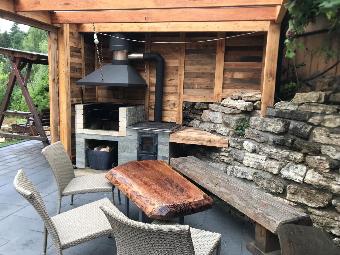 Chalet. This chalets standout features are the sauna and fireplace. Featuring a private entrance, this spacious chalet also comprises 1 living room, 2 separate bedrooms and 1 bathroom with a shower. Guests will find a stovetop, a refrigerator, kitchenware and an oven in the well-fitted kitchen. The chalet also provides guests with a barbecue. Boasting a terrace with garden views, this chalet also provides a tea and coffee maker and a flat-screen TV with streaming services. The unit offers 7 beds.