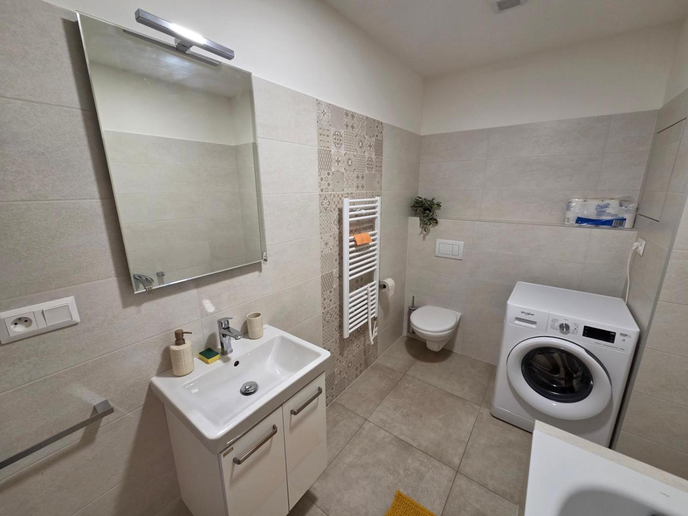 One-Bedroom Apartment. This apartment comprises 1 living room, 1 separate bedroom and 1 bathroom with a bath and free toiletries. In the well-equipped kitchen, guests will find a stovetop, a refrigerator, kitchenware and a microwave. Featuring a balcony with a quiet street view, this apartment also provides a washing machine and a flat-screen TV. The unit offers 2 beds.